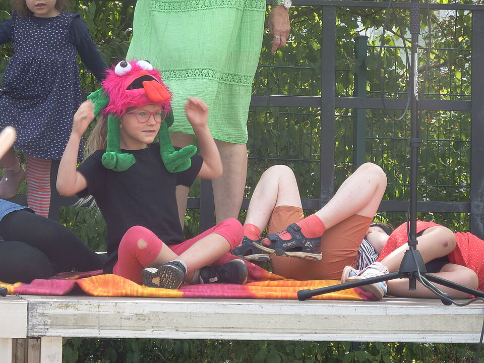 Auf der neuen Bühne feierten die „ABC-Piraten“ ihre Premiere und präsentierten mit ihren Erzieherinnen erstmals ihre eigene Kita-Hymne – entstanden im Hausprojekt im März!