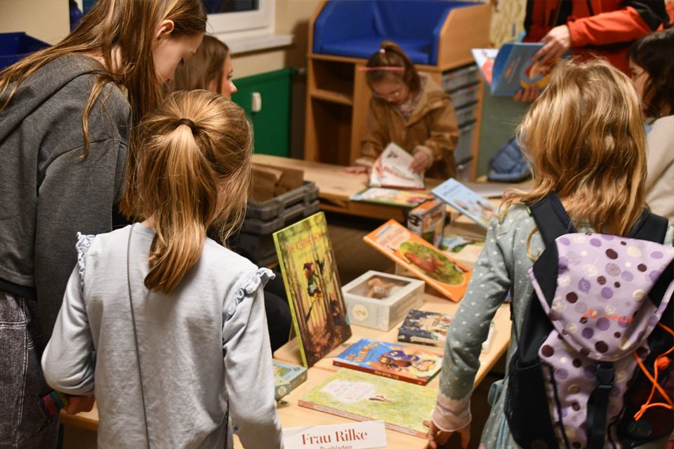 - Buchverkauf der Buchhandlung Rilke – neue und vorgelesene Bücher konnten hier mit nach Hause genommen werden