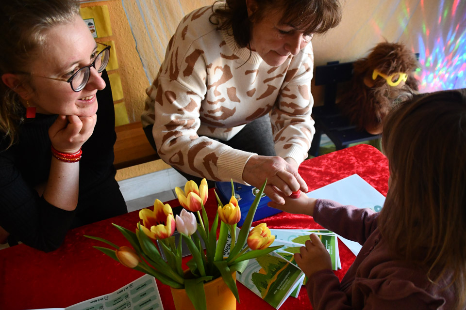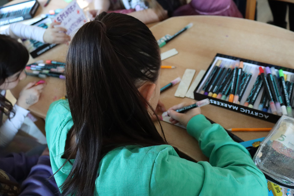 - Eine Bastelecke vom Kunsthaus, in der kreative und liebevoll gestaltete Lesezeichen entstanden
