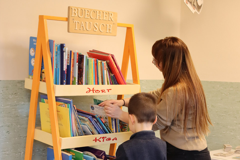 - Einen Büchertauschtisch, an dem alte Bücher gegen neue Lieblingsgeschichten getauscht werden konnten
