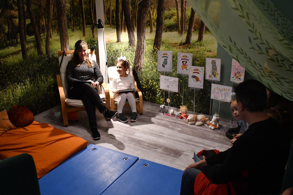 Die kleinen und großen Besucher konnten an vielen verschiedenen Lesungen teilnehmen. Von „Harry Potter“ über „Der Grüffelo“ bis hin zum „Neinhorn“ war für alle Altersgruppen von 3 bis 10 Jahren etwas dabei.