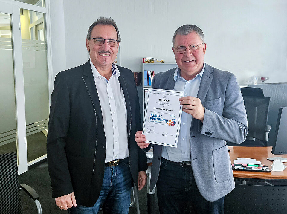 Der Hintergrund dieser Auszeichnung liegt in einer Vielzahl erfolgreich umgesetzter Projekte, dabei war die Deutsche Kinderhilfe stets Ideengeber und unser DRK Kreisverband Mecklenburgische Seenplatte e.V. übernahm die tatkräftige Unterstützung solcher Aktionen. So gab es in der Vergangenheit z.B. schon einen Schlüsselanhänger mit der Kinderschutzhotline, der an alle Kinder- und Jugendeinrichtungen verteilt wurde oder ein Kinderbuch mit dem Titel „Willkommen bei Freunden“ für Flüchtlinge.