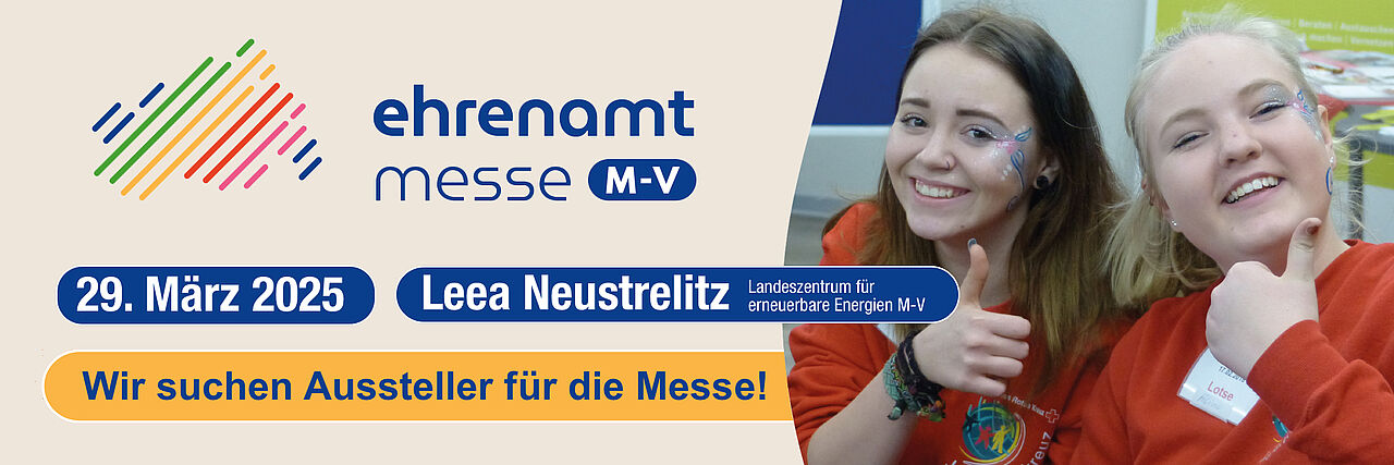 Die nächste Ehrenamtmesse findet in Neustrelitz am Samstag, den 29. März von 10.00 - 15.00 Uhr im Leea statt.
