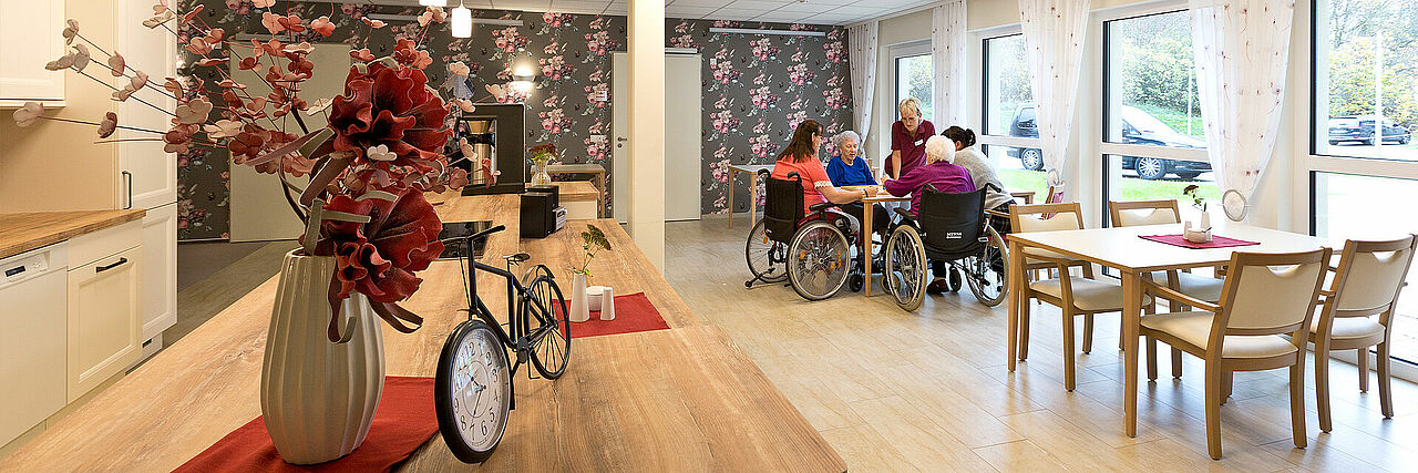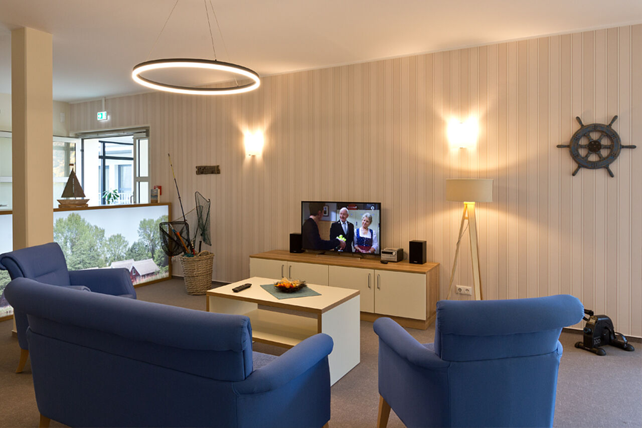 Jede Wohngruppe besteht aus Einzel- und Doppelzimmern, einem Wohnbereich und einer kleinen Küche, so dass die Bewohner*innen sowohl eine Rückzugsmöglichkeit als auch ein soziales Miteinander haben. Zum Verweilen laden zudem zahlreiche Sitzecken im Innen- und Außenbereich ein.