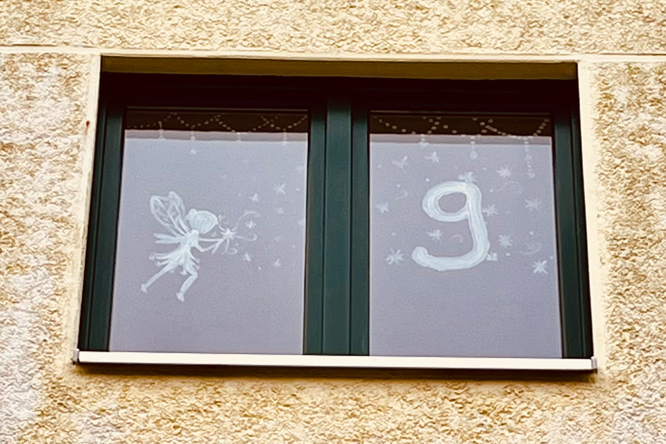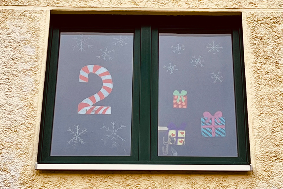 Jedes Fenster steht für einen Tag im Advent und erhält sein eigenes Motiv. Bunte Kugeln, fröhliche Weihnachtsmänner, glitzernde Sterne oder kleine Zuckerstangen – die Vielfalt der Ideen der Mitarbeiter der Kita lässt die Kinder täglich neu staunen. Schon früh am Morgen schauen sie aufgeregt nach oben und versuchen herauszufinden, welches Fenster heute an der Reihe ist.