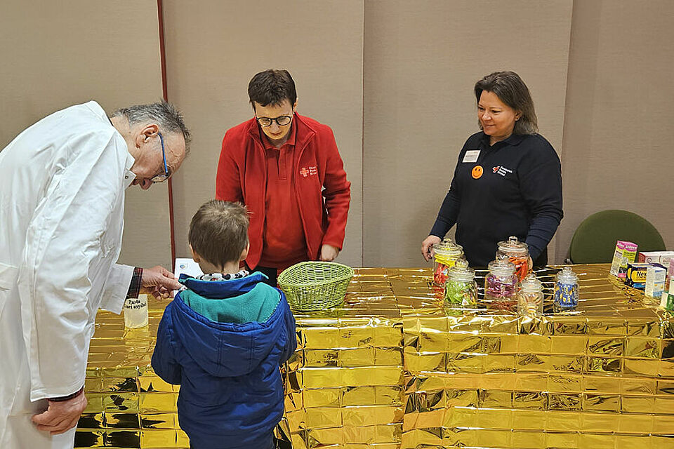 Die DRK-Teddyambulanz bestand aus verschiedenen Stationen: einer Patientenanmeldung, einem Warte-, Untersuchungs- und Röntgenbereich sowie einer Apotheke, die durch unsere fleißigen Rotkreuzler*innen betreut wurden.